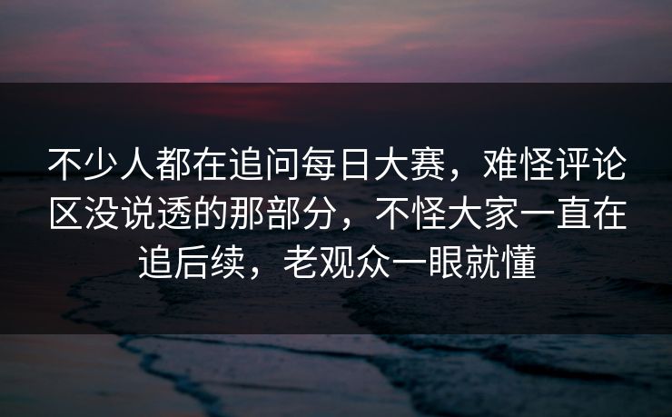 不少人都在追问每日大赛,难怪评论区没说透的那部分,不怪大家一直在追后续,老观众一眼就懂